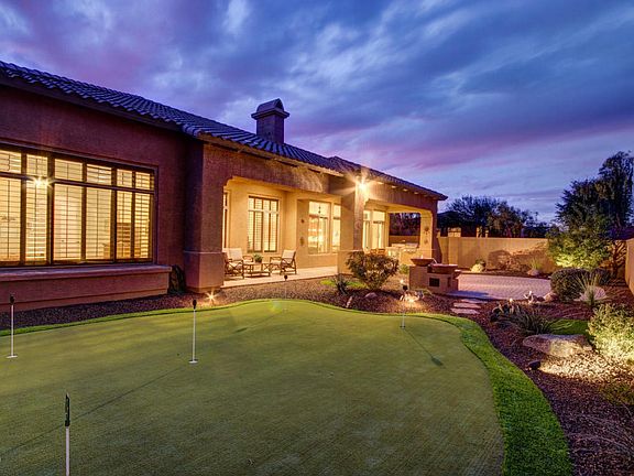 3 bdrm plus Bonus Room and Den with private entrance and full bath. Den can easily be a 4th bedroom. Jack and Jill 2nd and 3rd bedrooms. Single level in gated community w/all the amenities. Upgraded SS Jenn-Air & Bosch, expanded master suite & family room, 12` high ceilings, walk in pantry, expanded covered patio, split garage plan, hot water recirculating system. Premium corner home site backing to 15` open space easement w/front courtyard leading to a circular tower foyer w/coffered ceilings. Over $90,000 in upgrades & enhancements in 2011 incl ext paint, garage cabinets, retractable screen doors, outdoor living space W/putting green, water, features, BBQ grill, Solar Hot water heater, upgraded attic insulation,HVAC duct sealing, UV air filter....