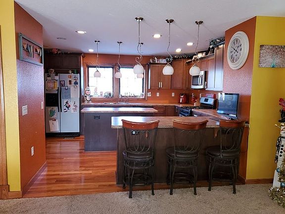Beautiful raised range home with tons of quality upgrades. Centrally located close to schools, parks, churches and shopping. Relax on the covered front porch of the this homey 5 bedroom 3 bath home. Lovely hardwood floor run through out the living room, dinning room and the spacious kitchen. This home features built-in blinds in the windows, recessed lighting, gorgeous wood trim and solid 3 panel doors. The upstairs bathroom is your own little spa area with the titled stand along shower with over sized rain head, jetted tub and double sinks. The custom kitchen has soft close doors, and drawers, a huge island with storage, breakfast bar, gas range and wiring for under cabinet lights and a large pantry. Just off the kitchen is a formal dinning room with patios doors accessing the deck which is stubbed for a gas line to the grill, very convenient!! Upstairs you will find 2 large bedrooms with nice sized closets and the even larger master bedroom with double closets. Pamper yourself in the spa bathroom complete with double sinks, whirlpool tub and over sized stand up tiled shower!! The downstairs has 2 more egress window rooms, a laundry room with tons of storage, a family room and another full bath. Did I mention this home is set up on 3 independent heat and air zones?? One for each level. This is an awesome money saving feature as you can control each level as needed. The water lines are also run independent so you can turn them on and off as needed. The backyard has newer grass sod and is like walking on carpet!!! There is also a fence and alley access for additional off street parking, or to add a garage. The 2 car garage is insulated, heated and the walls are finished. The craftsmanship and quality of this is home is impressive! Call your favorite agent to set up a showing today!!