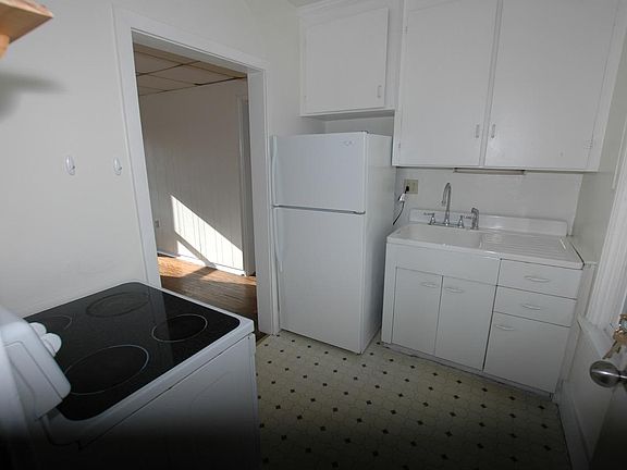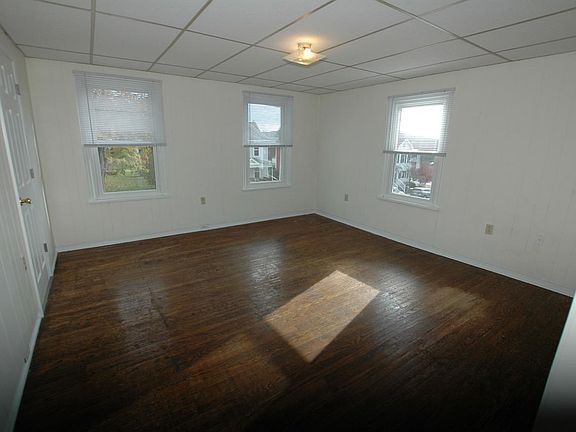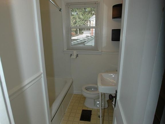 * Second floor apartment in up/down duplex with approximately 750 square feet of living space. * Kitchen (8.5 x 7 ) wood cabinets, formica countertop, vinyl flooring. Refrigerator and range included. * Outside deck (9.5 x 4) accessible from kitchen. * Living room (14 x 14) with wood flooring. Closet and pantry area for storage. * Dining room (13.5 x 12.5 ) with wood flooring. * Full bath (6.5 x 6 ) with shower over tub. * Bedroom 1 (17 x 10 ) with wood flooring and closet. * Bedroom 2 (14 x 10 ) with wood flooring and closet. * Washer/dryer hookups in apartment laundry closet off of living room. * Vinyl, thermal replacement windows throughout. * Off-street parking space in rear included with additional street parking in front of property on Washington St. * Large shared front porch along Washington Street and yard in rear of property. Tenant pay electric. Owner pays heat, hot water, water/sewer/trash.