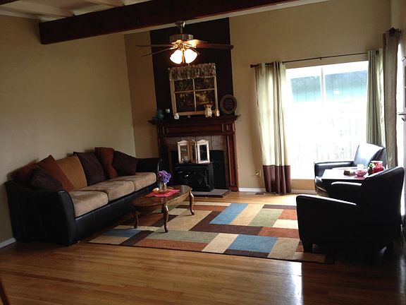 This 3 bedroom 2 bath home with Hardwood floors and a living room and family room has plenty of room for the family. Living room and kitchen area are open with beamed ceilings and flowing floor plan. Kitchen features granit tile counters with a center island. Two steps down into the family room gives a space enough for the whole family to enjoy. Backyard has a nice patio area and room for swing set. Side yard is great for animals or open it up for RV storage off the street.Sellers bought home 6 years ago and have completely went through it. Refinished wood floors added carpets and paint and reconfigured the kitchen. A must see.