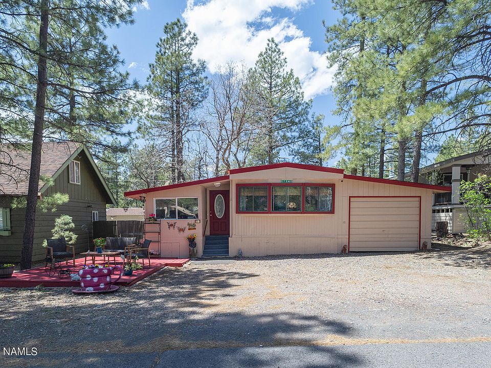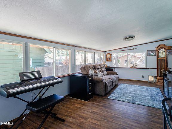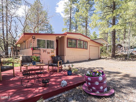 Great affordable year-round living on a quiet cul-de-sac street in Beautiful Munds Park. This Beautiful PALM HABOR Manufactured home (14x70) plus add-on is selling for $17,100 less than appraisal and has had extensive upgrades including the addition of A dining room family & bonus room (see SPDS) li. Appraisal indicates the SQUARE FOOTAGE IS 1502 sq fT. BUYER TO VERIFY SQUARE FOOTAGE. A few of the upgrades are: New flooring, pex plumbing, newer 50-gallon water heater (June 2020) with timer. As this is a single wide Manufactured home Typically only FHA or VA financing is available. The home has the FHA tie-downs and has been engineered certified. Come take a look at this beauty., call 1 hr prior to showing, small dog in home, (keep exit doors closed)! Taxes are for only the lot.