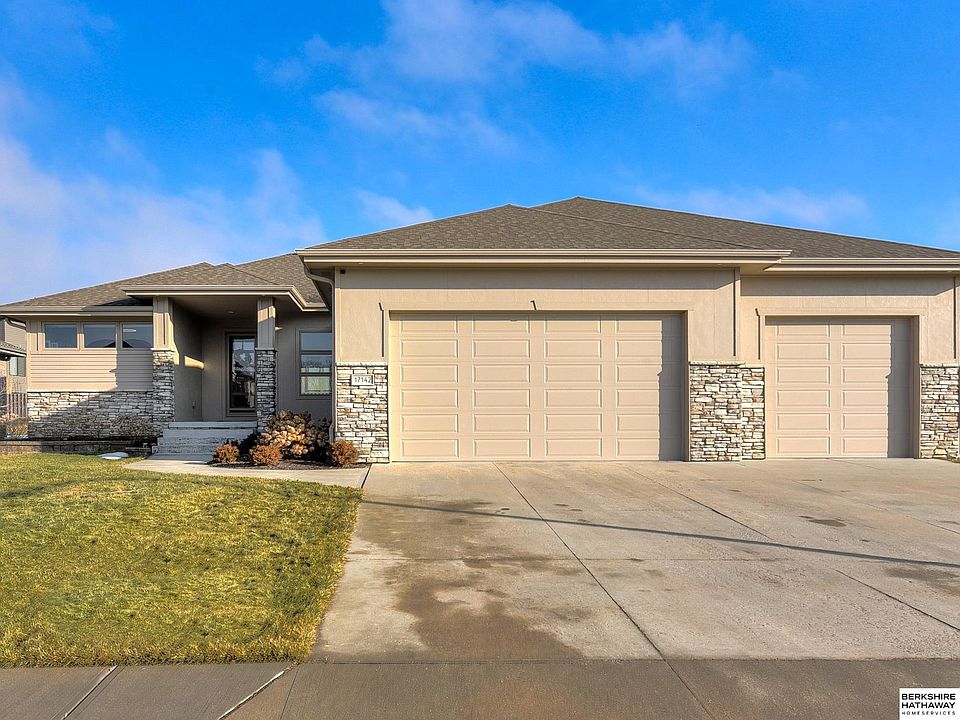 Welcome to Bennington with this modern home in Stratford Park! This south facing home is filled w/ high end finishes & elegant design. Step inside & you will find grand entryways, engineered hardwood & tile flooring throughout. The main floor hosts 3 beds and 2 baths. Relax in the primary suite with tray ceiling, recessed lighting, a fashionable chandelier, walk in tiled shower & custom makeup vanity. The chef’s kitchen features quartz countertops, stainless steel appliances, and a large walk in pantry. Entertain in the spacious lower level w/ wet bar, bedroom, bathroom, flex space & plenty of storage. Upgrades include: landscaping w/ pavers, limestone, solar lighting, firepit, Regal Prince Oak Trees, & retaining wall. The main floor was professionally repainted and will hold up against fingerprints & smudging. Custom light fixtures & window coverings. The 3 stall w/ tandem heated garage has built ins and epoxy floors. The dishwasher was recently replaced.