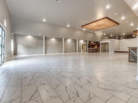 17 ACRES (mol) located on PAVED ROADS with an Event Center, 7 bedroom home, backyard pool oasis, huge horse barn, 2 round top barns, gated entry & more! Drive thru the double gated entry on stamped/stained concrete drive lined w/ established trees & landscaping. Sitting as the focal point is the huge event center w/ stunning finishes & marble look floors, large chandelier, built-in stage, 2 built-in bars, 2 bathrooms & loft overlooking it all. Full length lean-to's on both sides. The one on the west side & half of the east side are finished out for a garage/storage area w/ windows, electric & overhead electric doors. The back half on the east features divided livestock stalls, tack/feed room, pipe & cable divided pens & load-out alley. There's even concrete water troughs for your livestock. The large barn has concrete, insulation, electric, 5 overhead doors, tack room & is North/South positioned for the best breeze & airflow. In the back pasture sits the 2 round top barns; both w/ concrete floors. Up at the house you'll love the curb appeal with its brick arches, established landscaping & charming details. Once inside, the huge rooms & light neutral finishes will make you smile. The home boasts a total of 7 bedrooms!!! One end of home sits the master suite & on the opposite end is the MIL portion that has its own living room that opens to be poolside also making it a perfect pool house wing. One of the bedrooms was previously a small kitchen space that could easily be switched back if you desire. Step outside and into your very own vacation every evening. You'll love the east facing oasis with its large covered patio & outdoor kitchen. This overlooks the in-ground pool w/ a slide, waterfall, layout ledge & a swim-up table! If its too chilly for a swim then warm up in the hot tub or enjoy fun yard games with friends. Don't worry about Oklahoma storms anymore b/c of your oversized storm shelter!