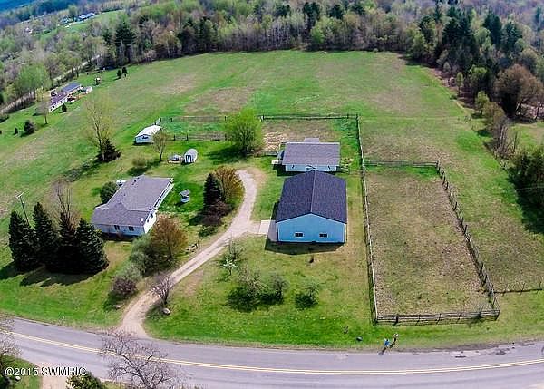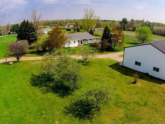 Perfect horse owners ranch !!3 Bedroom 2 full bath ranch 1640 sq ft Ranch that sits on 7.74 acres. 40x56 newer pole barn, 1040 sq ft horse stable barn with 5 stalls, tack room and two open exterior stalls. 480 sq ft horse shelter and a small storage shed.House had an addition added in 1999 that includes the large master bedroom, master bath and an 800 sq ft basement. Large L shaped porch. Home has two furnaces (new 2014), two how water heaters, two central air units and two septic systems. Roof on house and horse barn are 5 yrs old. New well was installed in 2005.The 7.74 acres butts up to 10 acres of State land.