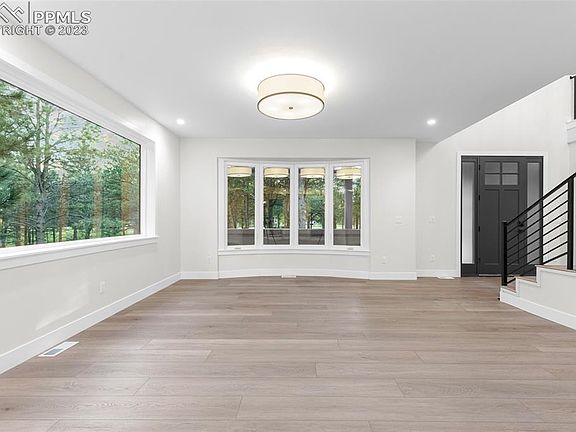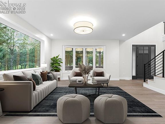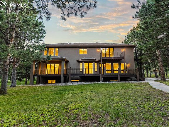 Gorgeous contemporary estate in Bent Tree-- experience the ultimate in luxury and privacy. This stunning property is nestled on a secluded and tranquil 2.86-acre lot, surrounded by beautiful mature pines. The home is made for entertainment with open floorplan, multiple outdoor gathering spaces and ultimate luxury finishes throughout. Do not miss incredibly rare 7 car garage + workshop with RV parking and room to add car lifts for additional vehicles. Park-like backyard features Gazebo with a gas fire pit and built-in grill, perfect for year round outdoor entertainment. Ideal location between Denver and Colorado Springs, with easy I-25 commute to both. This home is the perfect place to relax, unwind and entertain in style. Original 1992 home was completely rebuilt with all new mechanicals, plumbing, electric, walls, insulation, windows and all new cosmetic finishes in 2023, with warranties in place.