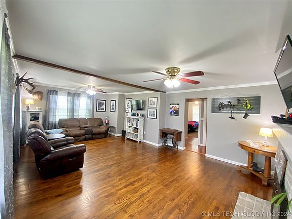 Welcome to this charming 3 bed, 1 bath, sitting on 3 acres. House sits on 1.87 acres, fenced with carport and paved driveway, offering convenient parking options for you and your guests. This home features original hardwood floors with wood beam ceiling, that adds character and warmth to the space. Beautiful granite counters with SS appliances in the kitchen, gas range that adds convenience and efficiency. This property also includes an unfinished guest house approx 875 sqft. giving you the opportunity to customize according to your needs and preferences. Additionally there is a 30x40 shop with utilities included, sitting on 1.13 acres, providing ample space for storage or hobbies. Covered porch and patio, where you can relax and unwind while taking in the peaceful surroundings. There is a storm shelter on the property. Don't miss out on this wonderful opportunity to own a home with spacious lots and plenty of potential. Schedule a viewing today and make this house your dream home!
