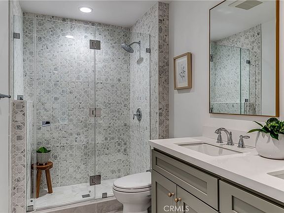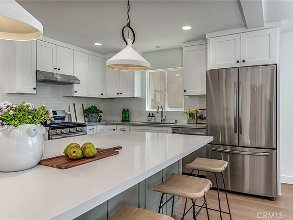 Welcome to Fountain Valley-Green Valley! This fully renovated property is the epitome of comfortable and luxurious living with its open concept design, abundant natural lighting, and designer finishes. Key features include new AC HVAC system, new electric panel, recessed lighting, hardwood flooring throughout, and rewiring and replumbing. Attention to details can be found inside through new doors, new dual pane windows, Moen faucets and more. From the moment you step inside, you're greeted with an expansive and airy atmosphere, thanks to the half vaulted ceiling and large patio sliding doors letting in natural light. Curl up by the fireplace for a cozy night in, or open the doors and bask in the summer breeze. The spacious living area seamlessly flows into the kitchen connected by a breakfast bar, perfect for entertaining guests or enjoying family time. The chef’s kitchen is a dream, including stainless steel Samsung appliances, quartz countertops, kitchen island with pendant lighting and an abundance of cabinet and counter space. The eating area is open and bright, with secondary access to the backyard via the sliding doors. Direct entry to the two car garage lies just steps from the kitchen. The hallway bathroom contains marble tile flooring and a full bathtub with showerhead. The two guest bedrooms showcase plenty of natural lighting and well sized closets. The master bedroom is complete with two ceiling to floor sliding closets and a private en suite with double sink vanity, porcelain tile flooring, and mosaic marble tiled walk-in shower, making a luxurious and elegant space to start and end your day. Outside, the home has been transformed with a fresh coat of stucco, a new concrete driveway and walkway, and beautiful professional landscaping. From the designer finishes, functional layout, and welcoming atmosphere, this home is sure to impress. Great location in the Green Valley community, designed for family-friendly living. The community offers a large 22-acre greenbelt with lighted sidewalks that run through the middle of the community, two clubhouses, four playgrounds, three swimming pools, including a family and adult pool. A sand volleyball court, horseshoe pit, and various on-site activities and classes, including a swim team, swim stroke clinics, and Aqua Tone classes, ensure that there's always something fun and exciting to do. Close proximity to Cox Elementary School, Masuda Middle School, churches, hospitals.