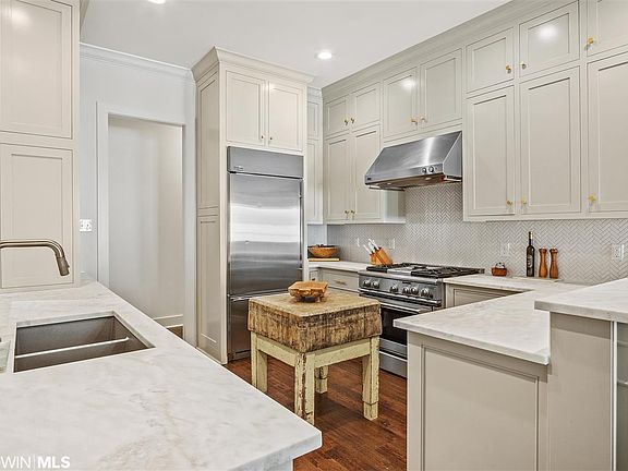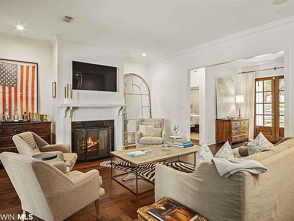 Beautifully done home in a quaint, Fairhope neighborhood. This 4 bedroom, 3 bathroom house is laid out perfectly, with an open floor plan. The house has 10 foot ceilings and hardwood floors throughout.The kitchen and guest bathroom were redone in December of 2019.The downstairs was painted in December of 2019. The spacious master and master bath are a great asset. There is a three car garage, with a large heated and cooled bonus room upstairs. Outdoor grill and screened in porch with a wood burning fireplace, makes for a great entertaining area. There is an upgraded security system, installed just a few months ago. This house is a must see!