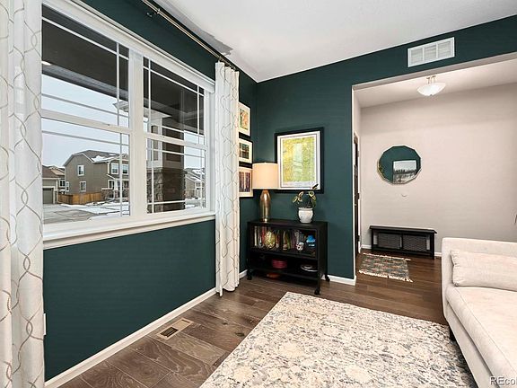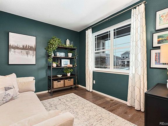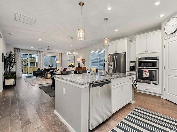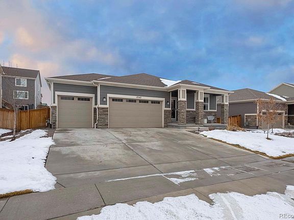 Stunning ranch style home with 3 car garage and large covered patio! Loaded with upgrades and energy efficient features! The main living areas are graced with wide plank, engineered wood floors and upgraded lighting. Gorgeous kitchen boasts a large island with pendant lights, staggered 42” cabinets with crown molding, 5 burner gas range with wall oven, stainless steel hood, granite countertops with tile backsplash and walk-in pantry. Great room open to kitchen and dining area with access to covered patio and fenced backyard. 3 generous bedrooms, 2 baths, main floor study/flex space and laundry room. Primary suit has a private bath with dual sinks, quartz countertops, large walk-in shower with beautiful pebble shower pan, linen closet and large walk-in closet. 2 secondary bedrooms share a full hall bath with tub/shower combo. Full unfinished basement with 9' ceilings. 3 car garage is finished and has pre-wire for an electric car. Covered front porch. Fenced backyard with covered patio (sunshades and lighting included), large outdoor patio, raised garden beds. Built by Meritage which means this home is more energy efficient and upgraded than the neighboring homes, including on demand hot water, and many smart features. Excellent location! Walk to Blakes Tavern, parks and trails. Located near Flatiron Crossing Mall and just one mile from I-25. EZ access to new grocery store, excellent schools, shopping and restaurants. 25 minutes to DIA, Boulder and Denver.
