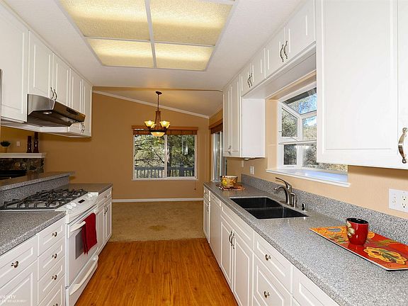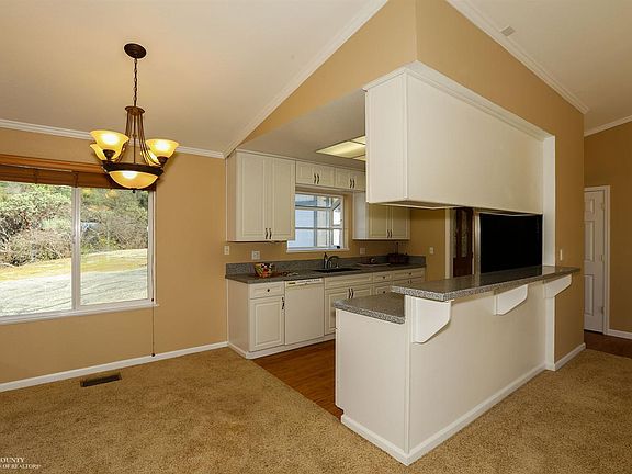 Enjoy sunset views from this lovely home! Open floor plan, the cozy rock fireplace and high ceilings offer a comfortable feel to this home. Updated bright and crisp kitchen with plenty of counter space. The master bedroom opens to the large deck with built-in spa. Two sheds on property for storage needs. Nestled in a private setting minutes from town.