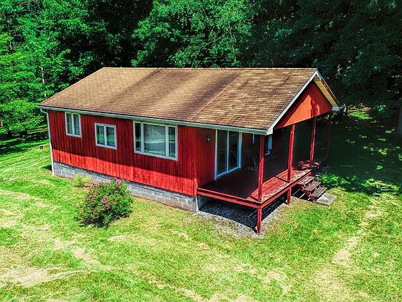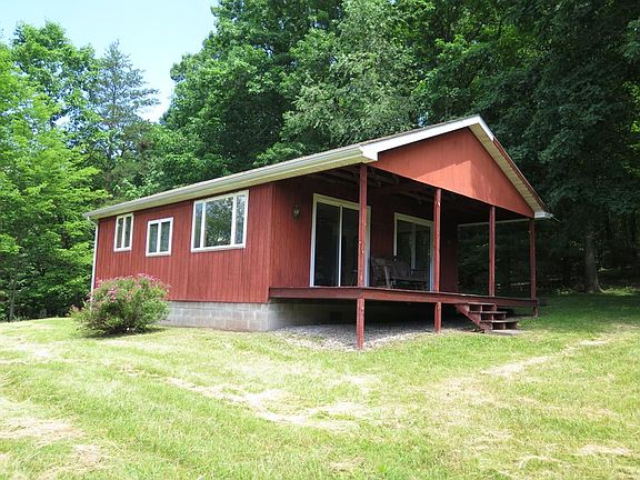 19+ acre partly open partly wooded tract with cute and cozy cabin. Cabin is set in a very private location on a hillside with great view of Sidling Hill and Smith Valley. Land behind cabin has many mature hardwoods and parcel in front is partly open with several open fields on benches which was part of an old pasture. Ideal set up for hunting. Cabin is in very good shape with hardwood floors throughout, 1 bedroom and 1 bath. Large living room with open access to kitchen, two sets of sliders to porch and a large picture window to enjoy the view.