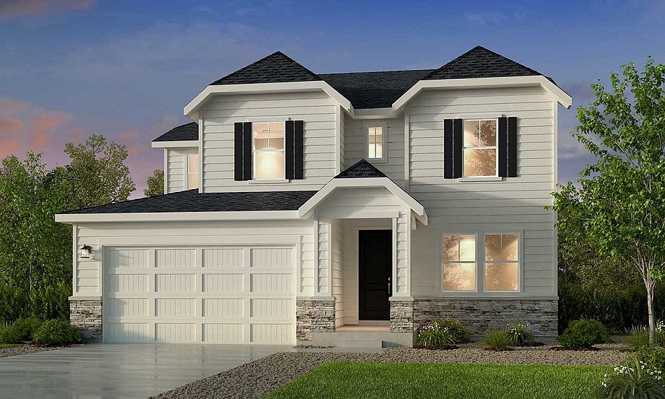 The Silverthorne is a versatile two-story home with plenty of room for growing households. The open kitchen, dining area and great room with an optional fireplace are perfect for keeping loved ones connected. Cooking aficionados will enjoy a well-appointed kitchen with an eat-in island and a large walk-in pantry. Just off the kitchen, enjoy soaking in Colorado's plentiful sunshine in the included sunroom. Functional spaces like the entry off the garage and numerous storage closets make everyday living easier. Upstairs, elegant double-doors invite you into the generously sized primary suite with a 4-piece bath and walk-in closet. Three additional bedrooms and a functional laundry room floor round out this ideal home design.