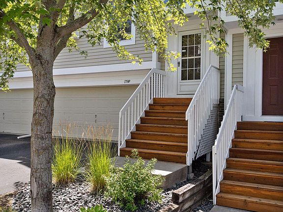 Don't miss this opportunity to own a beautifully upgraded townhome in a prime Minnetonka location, offering peaceful views of green space and woodlands. Step inside and enjoy the bright and neutral interior, highlighted by gleaming oak floors that add a touch of elegance. The kitchen boasts granite countertops, a gas stove, stylish backsplash and a large island. The spacious living room is perfect for entertaining, featuring a cozy gas fireplace with enameled built-ins. Upstairs, you will discover two bedrooms - the primary is complete with vaulted ceilings and a large walk-in closet. The upper level bath includes two vanities, separate shower and a soaker tub. Storage is a key feature of this townhome, with the oversized two-car garage and under stair spaces providing ample room for your belongings. Relax and enjoy the natural surroundings from your private deck. Close to shopping, dining, transportation and more - this home is a true gem!