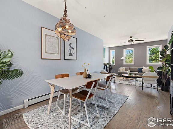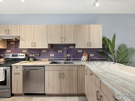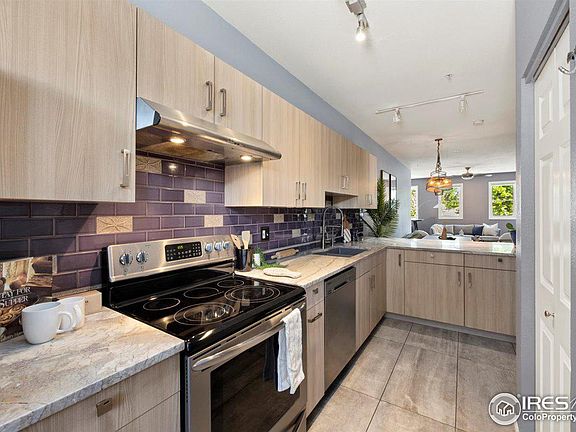 Home appraised at 747k! Come grab equity right away at this peaceful downtown oasis. Steps from the renowned Boulder farmers market, Pearl Street & the bike path that takes you straight out to the mountains. In downtown Boulder, a fully remodeled 2 bed / 2 FULL bath end unit is rare to find. Enjoy a flat irons view on the shared patio as you tend to community garden beds, and from one of the bedrooms. The home contains the highest end, eco friendly finishings. You'll love how spacious this home feels. Your entry, kitchen, dining & living room, as well as a private patio that sets your primary bedroom back from 15th street, creates distinct living spaces in the home. The corner unit layout is just perfect and you'll be stoked to find out how great the sound proofing at this second story walk up lock and leave is. The kitchen features Sonoma tile individually blown glass back splash, gorgeous marble counters and bamboo cabinets. In the dining area hangs an artisian Canova pendant imported from the Philippines. The floors in the main living area are refinished original hardwood, the primary bedroom floors are 150 year old reclaimed barn wood. The primary bath has a designer, aromatherapy oxygenated bubble tub from MTI, hand forged copper sink and designer faucets. This home was thoughtfully painted to give you pops of bright mood boosting color. The 2nd full bathroom has custom hand painted tiles & MTI tub. You will be surprised at how much storage is possible here. This home is pre-inspected and appraised to give Buyer's peace of mind. The home comes with 1 covered parking space. Washer Dryer in unit. Secure Entry. Built in 1997 so you won't hear your neighbors. This home is a haven in the middle of it all. A true Piedaterre. Just blocks from the creek, Central Park, Pearl Street, walk to CU & the world renowned Boulder farmers market. Ask Ellen about up to 1% credit to be used towards closing costs when you use preferred lender.