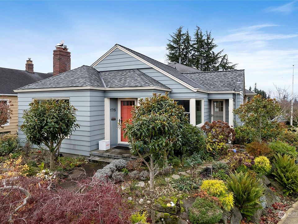 Meticulously maintained Magnolia home. Welcoming entry features the postbox & coat closet with circular window. Oversized living room boasts large picture window & gas fireplace, perfect for hosting or relaxing. Open archway leads to formal dining room. Kitchen features Caesarstone counter tops, stainless steal appliances, garbage disposal & breakfast nook with built-in shelving. Olympic Mountain views from kitchen & nook. Private primary bedroom with full size closet. Full bathroom with 1930s tile, oversized linen closet, & ceramic tub. Double pocket doors open to 2nd bedroom/office allowing light in from French doors opening to patio & garden space. 2 parking spots & near bus routes 24/31/33. Close to dining, shopping & recreation.