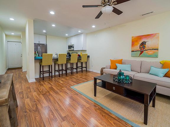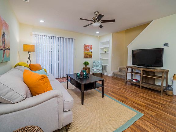 Two- story condo, with 3 bedroom, 3 full bath, and open floor plan, located in Midtown. The fully renovated kitchen boasts new white shaker cabinets, granite countertops, and stainless steel appliances. There is also newer laminate flooring on the entire bottom floor, and carpet upstairs. Perfectly located in the back of the the community, surrounded by trees, which makes for a great spot to have the private patio that features a spacious outdoor storage closet. Located just minutes from shopping, beaches, medical facilities, Whole Foods, Trader Joe's. Parking is assigned. Washer, dryer and refrigerator convey. Ready to move in!