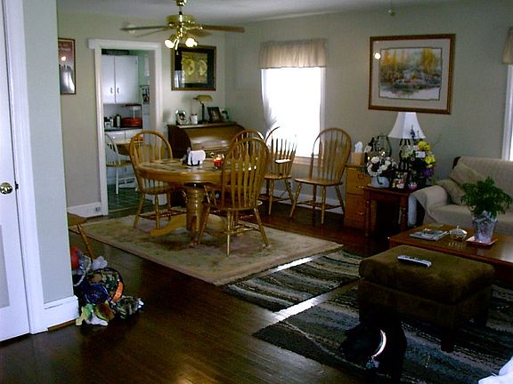 Charming and with great curb appeal, this ranch home is just perfect for a single person, couple, or small family. It sits on 2 lots fronting on 5th St. and has an additional 4 lots behind the house which have been mostly cleared and go down to a little creek. The home has 1248 sq. ft., 2 bedrooms and bath and a half. Spacious open living and dining areas, galley kitchen (but large enough for a breakfast area), utility room, and a den, sun room or office off the master bedroom complete the interior space. Covered front porch and rear deck are nice for enjoying the outside. There is a paved driveway, storage space under the rear of the house for your lawn tractor, and a useful storage/shop/utility building in the back yard. There are lots of closets, Vinyl siding and central AC are around 10 years old. Walking distance to downtown, pool, library, etc. This house is listed well below assessed value for a quick sale. It won't last long! Call today.