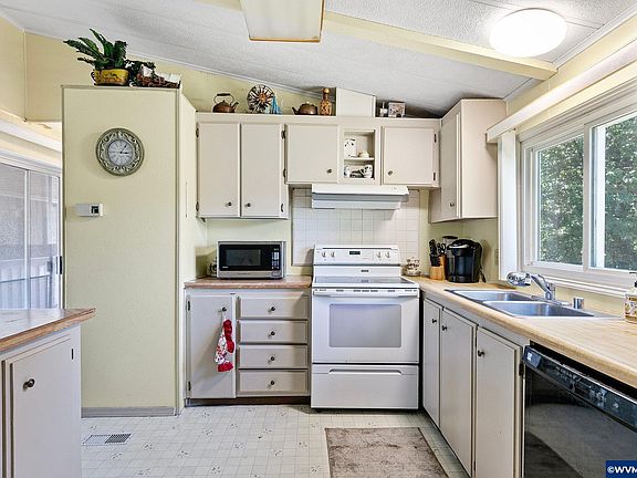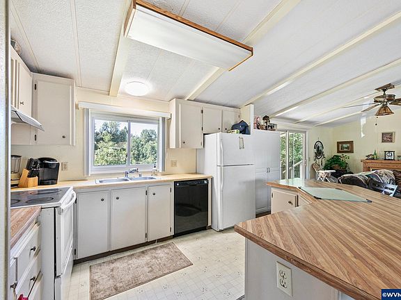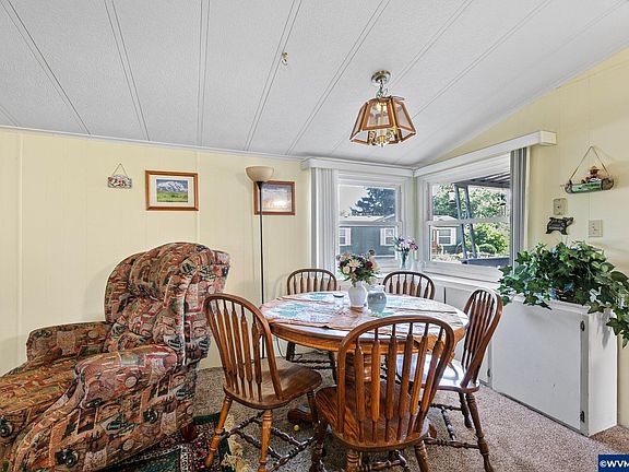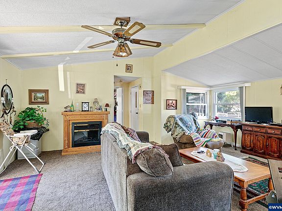 Welcome to your serene riverfront retreat! This charming 2-bedroom, 2-bathroom manufactured home. The spacious kitchen with an island and the open-concept living and dining area are complemented by vaulted ceilings and large windows, providing stunning views of the Santiam River. Additional features include a convenient storage shed and off-street parking. Just a few steps away are trails leading to the river. Perfect for fishing, kayaking, or simply relaxing by the water.