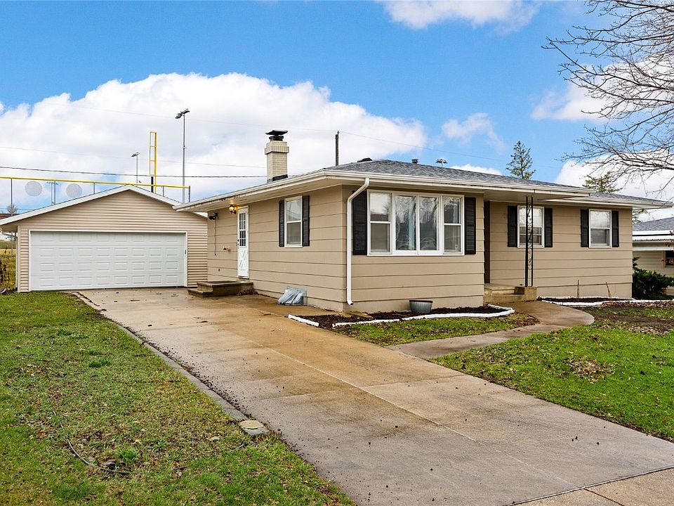 Close to all of the shops and restaurants of Uptown Marion, your choice of parks and quick access to HWY 100, this charming home backs up to the baseball diamonds and tennis courts at Marion High School, and has lots to offer! On the main level, you will find 3 bedrooms and a full bathroom with a dual sink vanity and shower/bath combo. Also on this level is the living room with a corner woodburning fireplace off of the kitchen and dining area with newer sliders to the backyard with a concrete patio, 2-car garage (both NEW following the Derecho) and a second concrete patio with a firepit. The lower level has bonus space galore. There's a great-sized 4th nonforming bedroom, full bath, laundry room, mechanical room with extra storage, a long rec room and another room, perfect for a game room, home office, home gym, craft room or any of your favorite hobbies. The roof and gutters were both replaced following the Derecho as well. Schedule a showing today to see this sweet Marion home!