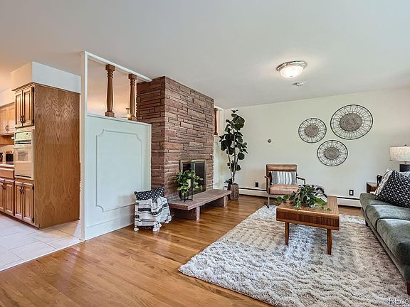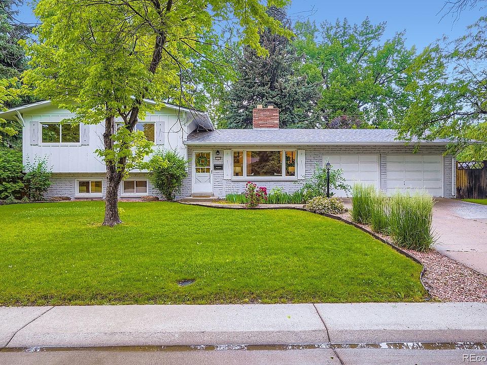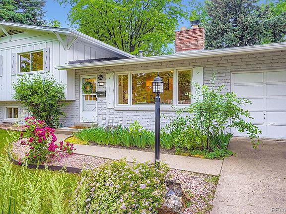 Welcome to this delightful 4-bedroom, 3-bathroom mid-century modern home in the highly sought-after Applewood Grove neighborhood. Spanning 2,078 sq. ft., this home harmonizes nostalgic charm with endless potential. The eat-in kitchen features original appliances and a distinctive copper backsplash, while a double-sided wood-burning fireplace adds warmth and connects the kitchen to the living room, which boasts a large picture window overlooking the beautifully manicured front yard. Step outside the kitchen to a spacious backyard, enhanced by mature trees and lush greenery. The property backs to the Applewood green belt, making the backyard your own private oasis. Upstairs, you’ll find three generous bedrooms, with a fourth bedroom on the lower level. The main and upper levels feature hardwood floors, complemented by new carpet downstairs. The primary suite offers an ensuite bathroom with natural light, and access to a deck leading down to the luxurious backyard. An oversized garage provides convenience and ample storage. This move-in-ready home is a perfect blend of charm and future possibilities in a prime Golden location.