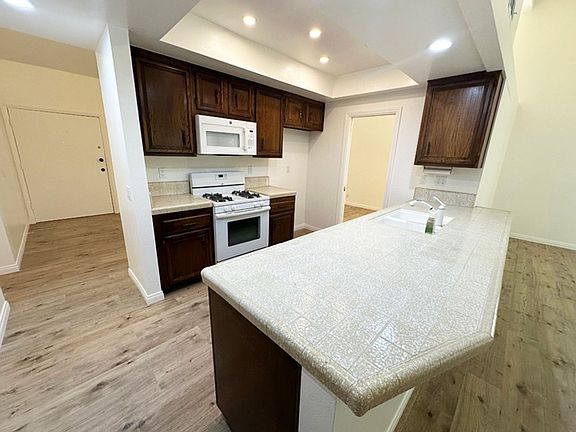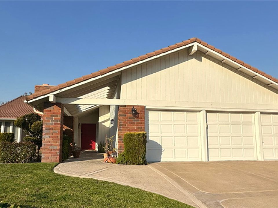 Single level four bedroom home in Rolling Hills neighborhood of Fullerton. New vinyl plank flooring throughout. Living room with fireplace, bay window, and attached dining room. Galley kitchen with gas range, microwave, and dishwasher. Family room with back yard access. Spacious primary bedroom with en suite bathroom containing shower. Double closets and slider access to back yard. Three additional bedrooms with cathedral ceilings. Storage available in hallway. Three door garage with finished flooring and laundry hookups. Back yard with lemon, grapefruit, and orange trees. One block from Rolling Hills park and 1 mile to Craig Regional Park entrance. Close to 57 and 91 freeways. 2 miles to Cal State Fullerton, 2.8 miles to Fullerton College, and 3 miles to Downtown Fullerton.