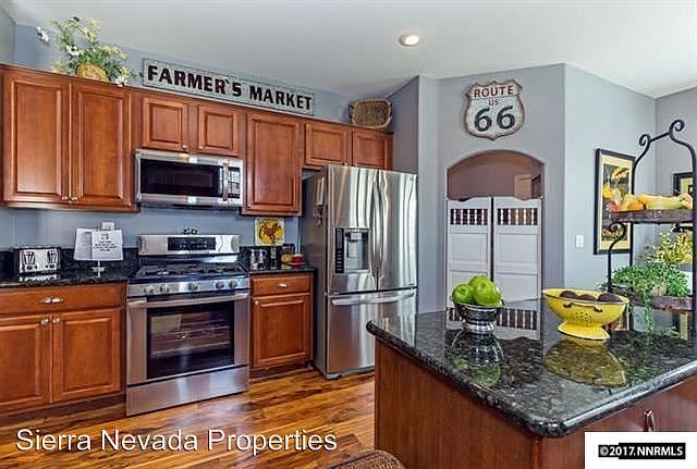 Charming Clean Upgraded Home in South Reno - Beautifully kept home with many recent upgrades in the gated community of Wyndgate. This home features LG stainless steel appliances, washer & dryer, granite counters, newer laminate flooring throughout except for two of the bedrooms, new interior paint, and plantation shutters. In the master bath is a gorgeous walk in shower with large closets. There is a clubhouse which offers a workout room, seasonal pool/hot tub, and rec room. HOA takes care of the front yard landscaping. In the rear yard has a patio cover with mature trees for relaxing. This home is located near good schools, freeways, restaurants, and shopping. Dogs will only be allowed on approval and will require a $500 deposit. Tenant responsible for power, trash, water, and backyard maintenance. No Cats Allowed (RLNE3555968)