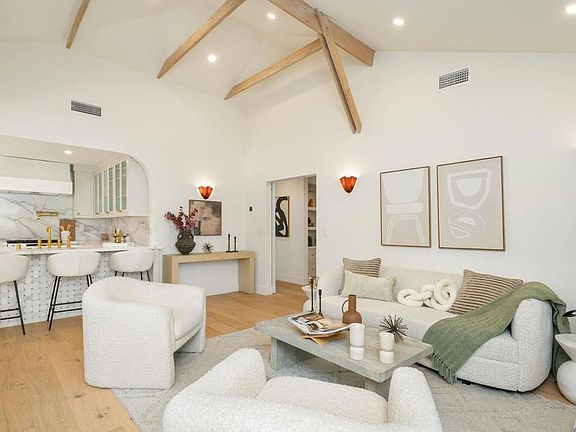 Settle into life in this beautifully remodeled Sunset Park home, just moments from beach days, neighborhood cafés, and easy coastal strolls. Designed with relaxed Westside living in mind, the home welcomes you with wide-plank wood floors, abundant natural light, and an easy, beach-inspired aesthetic. Vaulted ceilings with exposed beams and a statement fireplace create an open, comfortable living space that naturally lends itself to casual weekends and gathering with friends. Framed by a striking wide arched opening, the spacious kitchen flows easily into the living and dining areas, reinforcing the home’s open layout. Custom cabinetry, beautiful countertops, premium appliances, convenient pot-filler, and a generous peninsula create a space that works just as well for everyday living as it does for entertaining. The primary bedroom offers a peaceful retreat with vaulted beamed ceilings, direct outdoor access, and a spa-style bathroom featuring designer finishes and a spacious glass-enclosed shower with built-in bench. Additional bedrooms are bright and flexible, ideal for guests, workspace, or creative use, while custom built-ins throughout add both style and functionality. The backyard is designed for year-round enjoyment, offering multiple decks for dining and lounging alongside a generous lawn that creates a welcoming outdoor setting. Located in the heart of Sunset Park, the home sits just minutes from Ocean Park and Main Street favorites, local cafés, farmers’ markets, neighborhood parks, biking paths, yoga and Pilates studios, and highly regarded schools. The beach is close by, with easy routes to the 10 and 405 when heading across the Westside or around town.