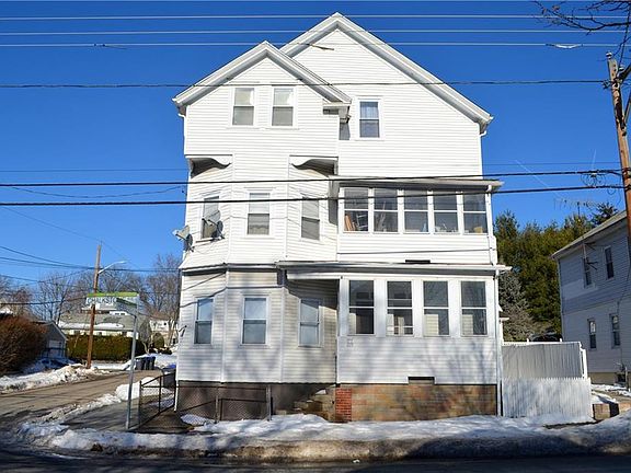 Wonderful property for investment or owner occupied! Rare three family offers two 3 bedroom apartments and one 4 bedroom apartment. Spacious 1200 sq ft units with high ceilings, brand new architectural roof in 2017, new vinyl insulated windows installed in 2005, no maintenance vinyl siding. Property is located on a corner lot with plenty of off-street parking. Close to shopping and bus line. Perfect for student rentals at nearby colleges. Two units have gas on gas heat, One unit has forced air.