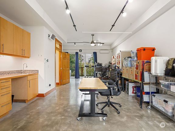 Come check out Bellingham's only Live/Work, Studio/Lofts! Located downtown & zoned for a variety of uses: retail/service/office/residential, this unit makes for the ultimate opportunity to operate your home business or make additional income by leasing out part of the unit. Ground level offers open commercial space, concrete floors, ADA .5 bath & large french doors. Upstairs modern design has vaulted ceilings and 150 sqft loft-style bedroom featuring updated kitchen and bathroom. New appliances and heat pump recently added, along with 220V EV charging in oversized garage. Back decks overlook wildlife & Whatcom Creek. Solar panels, on demand hot water & lots of natural light. Trails, shops & restaurants just steps away.