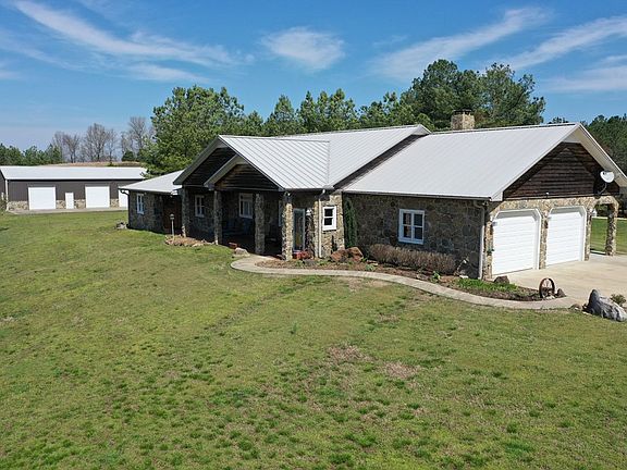 Long winding driveway takes you pass 2 stocked lakes to the custom built home. Exterior is stone and cedar siding. Covered front porch offers stunning views of the property. Lifetime standing seam metal roof. Open floor plan features living room w/wood burning stone fireplace, kitchen w/work island & dining area. Large master bedroom w/sitting area. 2 additional bedrooms, additional bath & utility room. 2 car att. garage w/hobby room. 30x90 3 bay detached insulated garage/shop w/1 drive through bay, electric, water and bathroom. 56x39 pole barn. All this on 100+- acres. Your own private recreational paradise. Fish, hunt, ride ATVs or horses or hike. A must see! Fiber Optic Cable available.