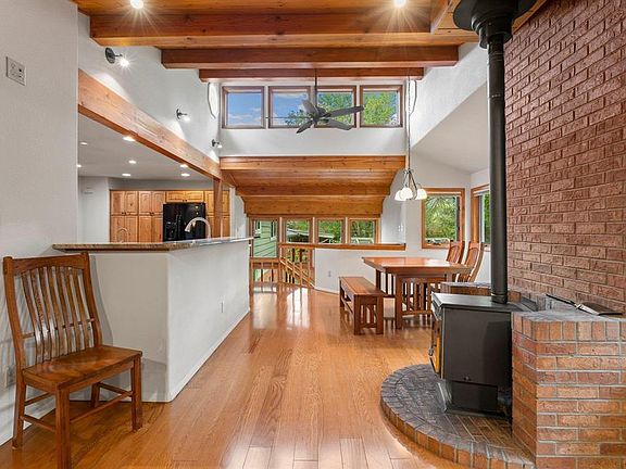 This exquisite updated split-level home is nestled on a generously sized lot in one of the most desirable locations in Durango. The in-town home backs to open space, offering unrivaled tranquility and privacy. This captivating residence boasts various features that cater to comfort, style, and functionality. Upon entering, you'll be greeted by an inviting atmosphere created by abundant natural light and attractive updates. The expansive chef's kitchen is the heart of the home, adorned with modern amenities catering to culinary enthusiasts. The double ovens, custom cabinets, and granite island with a convenient prep sink make it an ideal space for creating culinary masterpieces. Hardwood floors throughout the main level lead you through the open layout, connecting the spacious family rooms offering versatile relaxation and entertainment spaces. With three well-appointed bedrooms and three baths, including an updated primary bath, this home ensures everyone's comfort and convenience. Natural light pours in through the numerous windows, accentuating the beauty of the hardwood floors and the charming details such as the tongue and groove ceiling. The fireplace and woodstove provide warmth and ambiance during cooler seasons, creating an inviting space to gather with loved ones. Thanks to ample storage spaces thoughtfully integrated into the design, storage is never an issue. The hydronic baseboard heating system guarantees cozy winters, and the thoughtful layout promotes efficient cooling during the warmer months. Step outside to discover a serene oasis featuring mature landscaping, including a greenhouse for nurturing your green thumb. The .26-acre lot extends to the open space beyond, ensuring an uninterrupted connection to nature. The oversized two-car garage provides shelter for your vehicles and additional storage options. Built-in 1968, this home exudes timeless charm while seamlessly blending modern updates that complement its character. The desirable in-town location offers convenience to local amenities, shops, and restaurants, making this residence an ideal retreat that balances serenity with accessibility. Take advantage of the opportunity to own this remarkable split-level gem, where every corner reflects thoughtful design, comfort, and the joys of living in harmony with indoor elegance and natural beauty.