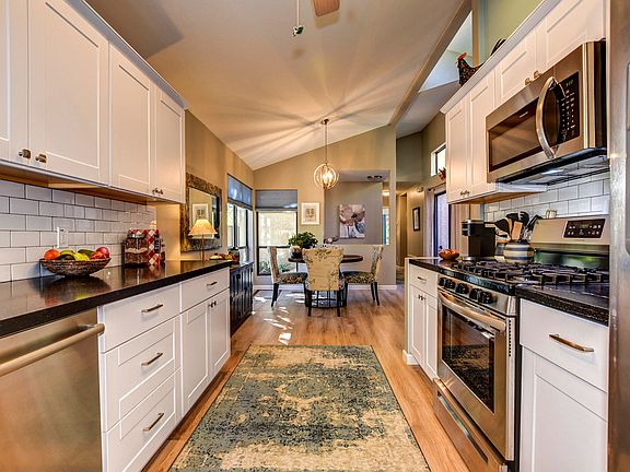 True total remodel. Kitchen with white shaker cabinets, granite counters, stainless appliances. Master bath has 2 vanities, 2 closets new tile shower and SGD to patio and fenced yard, mature plantings, private yard surrounded by pines. Other bath is also new, as is flooring, fixtures, fans, paint (no popcorn ceiling). Greatroom with vaulted ceiling, cozy gas fireplace. Tons of windows, light and bright ATRIUM with 2 SGD's. All new within the last 2 years. Nothing to do here but move in. *******PRIVATE CORNER LOT*******Active HOA, Tennis, Pickle Ball, Pool, Exercise, Library, Redecorated club house, holiday dinners, always something going on. Friendly neighborhood.This 1 will sell fast, make appt today!!