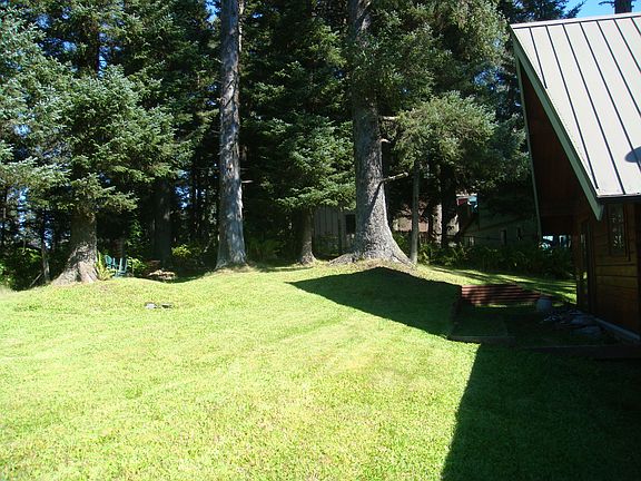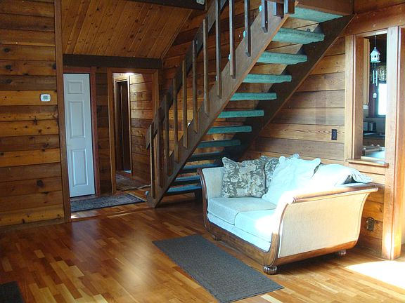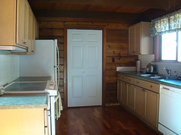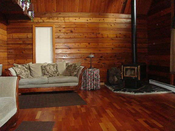 This panabode home has a metal roof, hot water baseboard heat with in-line hot water, and a wood stove. The bedrooms are 12' x 11' and there is a loft above the kitchen and dining room. Near the front door is a big walk-in closet for a pantry or storage, and a coat closet. There is also a nice linen closet next to the bath. A utility room is off one end of the kitchen and all major kitchen and laundry appliances are included. There is an 8' x 10' greenhouse on the property.