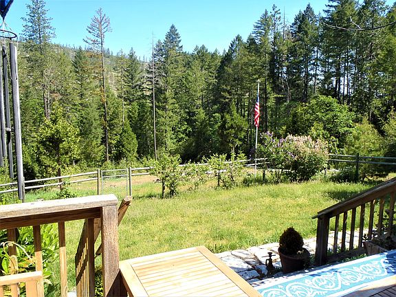 This is your chance to own the Oregon Dream!!!If quiet and peaceful are what your looking for this is it!!! Beautiful well cared for manufactured home in a private setting surrounded by trees, but with wide open space around home for an open feel and fire safety. This home looks like a quality stick built custom home. Front deck looks across the valley and the flagstone rear patio is right for relaxing. Fenced around the house so the deer won't eat your plants! This place is set up for your comfort and relaxation. Huge water holding tank in storage shed provides gravity flow pressure and capacity for safety. Last well flow test came in at 9.5 gal at start and ended at .3. New stainless steel sink, new electric range,, new microwave.