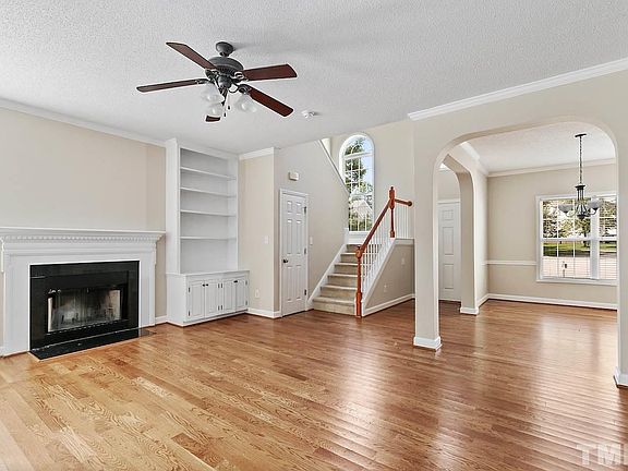 Lovely cul de sac home just min. from RTP, dwntwn Durham, Brier Creek and all major expressways. NEW ROOF. Granite kitchen with SS appliances, tile backsplash Open floor plan has large family room with built-ins and separate dining room. Hardwoods on first. Oversized master with alcove and unfinished storage. Expansive Deck overlooks large, flat backyard. FULLY FENCED. Storage galore including Shed in back. Home & Carpets Prof. Cleaned. Move-in condition - Just turn the key and you're home!