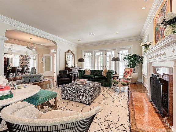 Truly of the most stunning homes in Heritage Hills-This Grand Mediterranean estate was one of the first home built by GA Nichols in historic Heritage Hills in 1917. The main level, impeccably decorated by Sees Design, provides contemporary function & flow with formal dining room, light-filled living room & parlor with 2 statement gas fireplaces; all providing ideal spaces for family + social gatherings. Walk into this home & be wowed by the amazing details, original woodwork, grand staircase, lovely natural light + hardwood floors. Dine-in chefs kitchen features large center island, high end appliances, white classic cabinetry, traditional moldings & polished black worktops. Upstairs is the sprawling owner’s retreat w/ large walkin closet, fireplace, patio access & ensuite bathroom w/ large soaking tub, separate shower & double vanity. Three add'l bedrooms, full bath & laundry room complete 2nd floor. Full finished basement w/ vast living or home theater space, wet bar, full bathroom, tons of storage & clubroom. Enjoy the beautiful terrace & massive front porch daytime & evenings. Unique side yard would be ideal for private pool area or play area. Newly renovated studio apartment above the 2 car garage, offers kitchen w/ new appliances, full bathroom, + washer & dryer.
