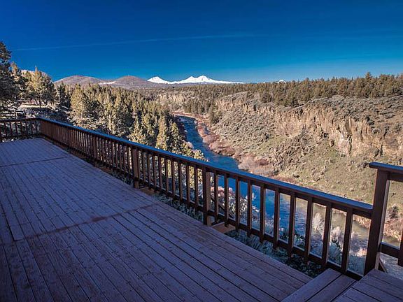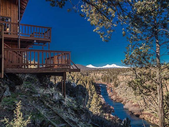 Welcome home to one of the most remarkably stunning views in Central Oregon. This riverfront home features dramatic Cascade Mtn & Deschutes River views. BLM land across the canyon protects privacy & offers abundant wildlife scenery. One owner home features vaulted clear cedar paneling, 2 cozy gas fireplaces, skylights & large picture windows, kitchen w/slab granite counters & hardwood floors, large master suite w/shower & soaking tub. Huge bonus room, tons of storage & ample deck space for outdoor living.