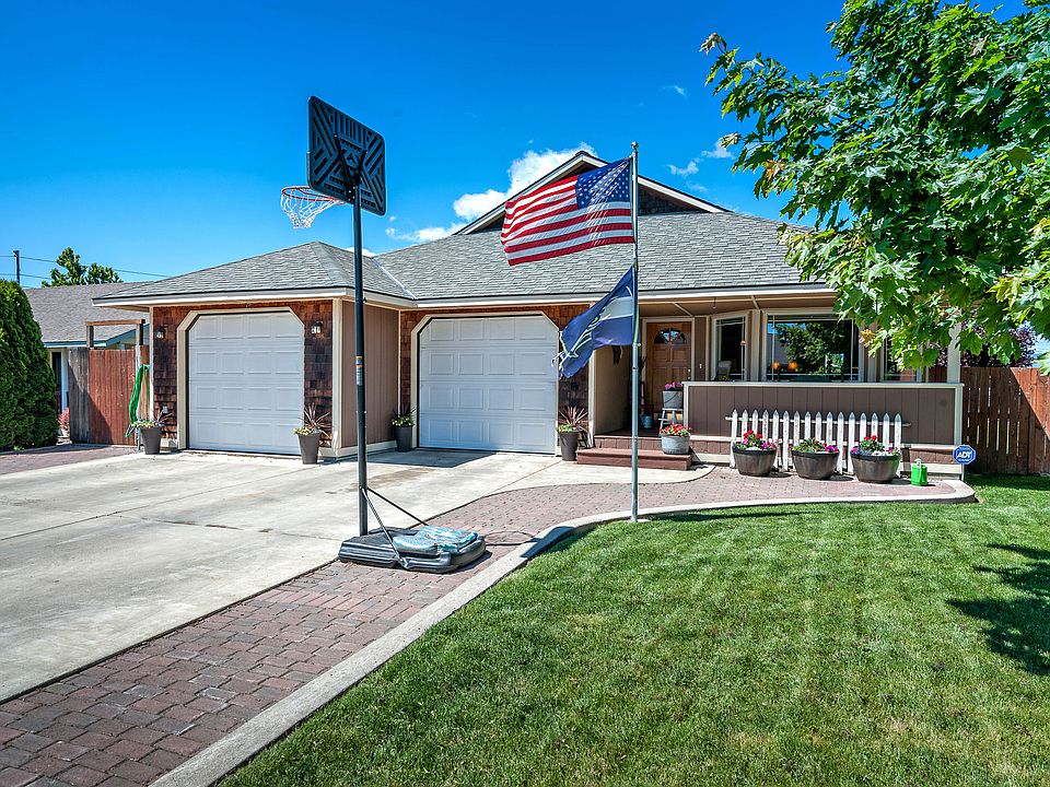 Beautiful home located close to town. This corner lot home in a quiet cul-de-sac features an open concept living room, vaulted ceilings, walk-in pantry, and Master suite with walk-in closet and master bath. The fully fenced yard is well manicured and set up for private outdoor living with covered back porch, patio, playset, and plenty of space. A large 2 car garage includes ample storage with additional workshop area. Also includes third spot in driveway for additional parking, and easy access to John Wayne Trail. Willing to pay 2.5% commission to buyers agent. Shown by appointment only to pre-qualified buyers