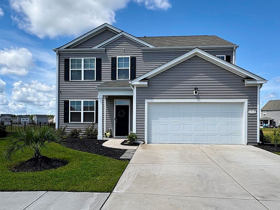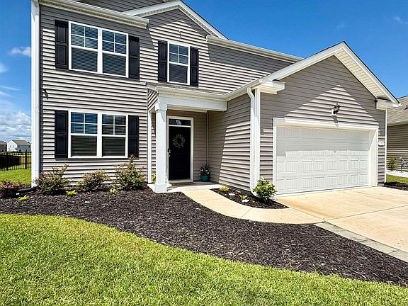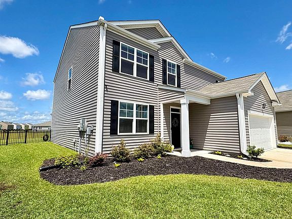 Welcome home to your slice of paradise, right here in Myrtle Beach!! The Elle floor plan offers plenty of space with practical, functionality. Featuring a first floor primary bedroom suite with a generous bath, walk-in closet, and linen closet. The kitchen boasts a large island with an upgraded breakfast bar and opens to the casual dining area and spacious living room. Granite countertops, 36" painted cabinetry, stainless Whirlpool appliances, and beautiful laminate wood flooring throughout the main living areas all what makes this house a home! There is also an inviting flex space on the main level that could be a dedicated home office or a formal dining room. Sliding glass doors off the dining area lead to the rear covered porch for added outdoor living space, with an impressive fenced in backyard that over looks a pond with a fountain. Upstairs offers large secondary bedrooms plus an expansive secondary living area for entertaining the whole family. The features and benefits are expansive, but it gets better- this is America's Smart Home! Control the thermostat, front door light, lock, and video doorbell from your smartphone or with voice commands to Alexa! You don't want to miss this opportunity for you and your family to thrive in this wonderful community and be able to call Carolina Forest, home!! Schedule a showing with your agent, today! All square footage and measurements are approximate. Buyer is responsible for verification.