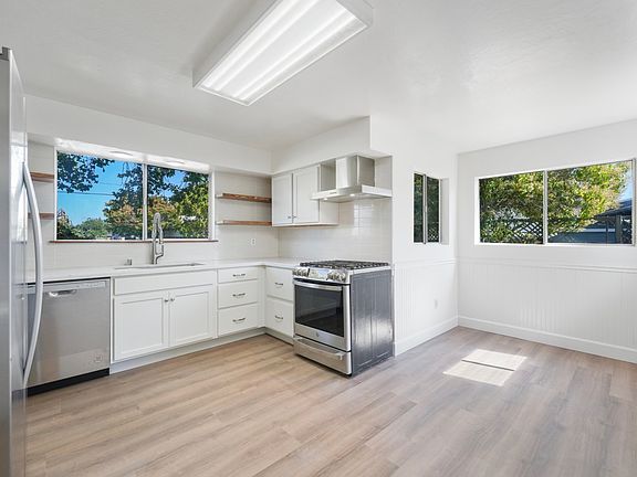 This completely updated two-story 3 bedroom house is located on a cul-de-sac in Northwest Santa Rosa. Large front and back yards, plenty of parking. The kitchen features new cabinets, quartz counters, and stainless steel appliances. There is one large bedroom with two closets downstairs. Two bedrooms and a half bathroom upstairs. A large laundry room with cabinet and folding table.