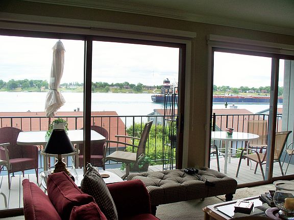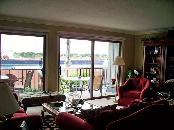 Incredible River Views! This three story spacious condo offers views from all angles, open kitchen with adorable booth and formal dining in the great room. Balconies on all three levels allowing for panoramic viewing of river activity. Two bedroom, two and one half baths, tons of storage, main level laundry, 6 burner gas stove and built in oven, decorative kitchen tiles, open and airy this home is turn key and ready to enjoy the St. Clair River Views!