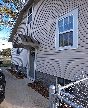 oversized backyard property goes way back after the fenced area to the tree line. The enclosed front porch has windows and screens, perfect place for a rainy day. Living room has hardwood. Updated kitchen with built in dishwasher, stove and he refrigerator stays too. There is an upper level with windows at both sides of home, could be a study or storage area. Basement has the washer and dryer that stay with the home.