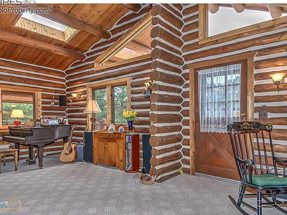 Idyllic Colorado log home.Real logs,exposed beams set the stage for a real Colorado experience.Look out upon the large meadows, rock formations & forest from your deck or solarium dining room & enjoy the views.Ideal for horses w/4 stall barn & pastures.Series of roads & trails promote the proverbial ride into the sunset.Great log addition in the same style as the rest of the home adds separation & utility.Oversize garage, lots of storage, excellent producing well & septic sized for 4 bedrooms.