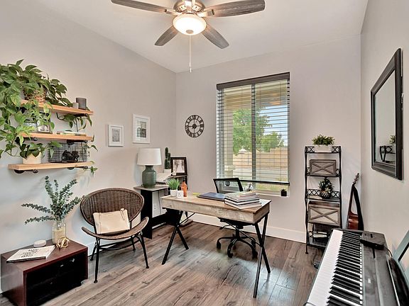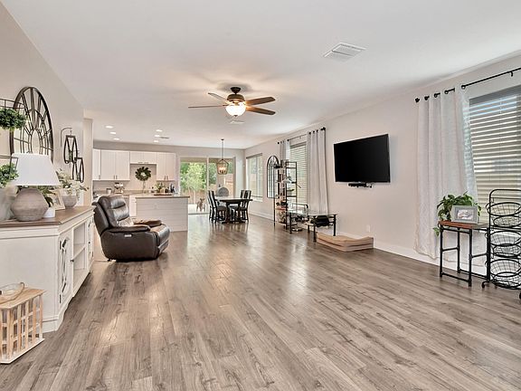 Stunning new construction. This home features and open & spacious floorplan with great room design concept, 4 bedrooms plus den/office. Kitchen boasts quartz counters, gorgeous solid wood shaker style cabinetry including with soft close doors & drawers with full extension slides, crown moldings, generous island with bar area to comfortably seat 3 guests plus added storage underneath. Large master suite offers dual raised height vanity, beautiful walk-in tile shower, private water closet, & spacious walk-in closet. Guest bedrooms are pre-wired for ceiling fans and guest bath also has raised height vanity and tile tub surrounds. Laundry room is situated for full size washer & dryer to afford space for more quartz counter, a folding area and large pantry storage cabinet. Outlast+ Waterproof wood laminate flooring throughout the living area and bedrooms plus tile in the bathrooms, recessed LED lighting throughout, raised panel 8' interior doors, low E double pane vinyl windows, 9'+ interior ceiling height.