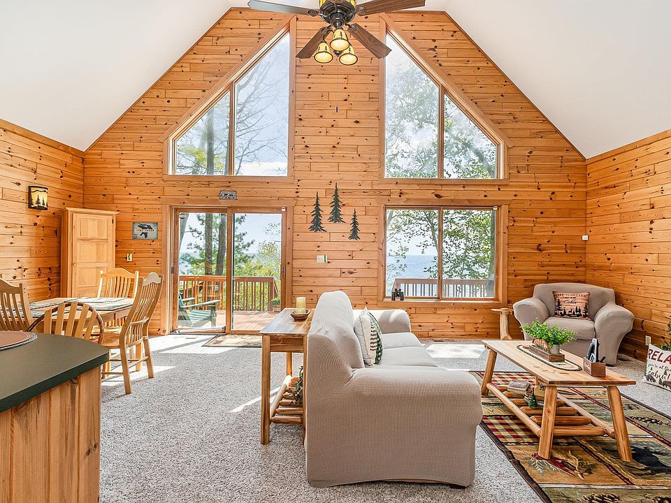Lake Huron Luxury Retreat Welcome to your private oasis on the pristine shores of Lake Huron. This stunning home is perfectly nestled on a wooded bluff with private steps leading down to a sugar-sand beach—offering breathtaking views and the soothing sounds of waves year-round. Inside, you'll find a beautifully designed open-concept great room with soaring ceilings and expansive windows that flood the space with natural light and showcase the panoramic lake views. The spacious layout is ideal for relaxing or entertaining in style. The primary suite, located upstairs, offers a serene escape complete with a private en suite bath. A generously sized second bedroom on the main floor comfortably accommodates two queen beds, making it perfect for hosting family or guests. Lovingly maintained as both a cherished family retreat, this property offers luxury lakeside living. Enjoy nearby amenities including the golf courses, charming coastal towns, and endless outdoor recreation. Whether you’re seeking a personal sanctuary or second home, this Lake Huron gem delivers unforgettable beauty and exceptional value.