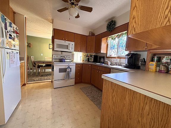 Welcome to this beautiful 3-bedroom ranch-style home, complete with a 4th non-egress bedroom and a layout designed for comfort, functionality, and entertaining.  The main floor centers around a cozy electric fireplace, seamlessly connecting the living room, dining area, and kitchen—creating a welcoming space for everyday living and gatherings alike.  The kitchen flows into a pantry area with a convenient half bath and laundry setup.  Three main-floor bedrooms include a primary suite with direct access to a full bathroom.  Downstairs, the finished basement opens up to a spacious living area/rec room perfect for movie nights or hosting guests, featuring a wood-burning fireplace and a built-in bar.  Whether you're relaxing or entertaining, this space delivers warmth and versatility. Outside, the oversized two-car garage includes built-in cabinets and a workbench—ideal for projects and extra storage.  The backyard is a great size and ready for play, gardening, or simply enjoying the outdoors.  This home blends charm and space and ready to welcome its next chapter.