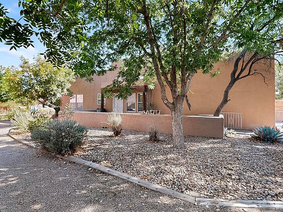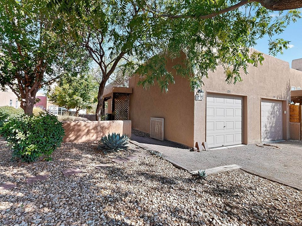 Charming 2 bed, 2 bath townhome, at a great price, in the gorgeous Los Jardines neighborhood, siting in the heart of Albuquerque's historic North Valley. The open-concept space has Modern style w/ Southwestern charm. This darling townhome features efficient living & comfort in a perfect sized, low-maintenance package. Be greeted by beautiful sunlight that fills the spaces of the inviting great room, w/ lofty ceilings and several clerestory windows. The layout flows seamlessly, creating a warm atmosphere perfect for relaxing or entertaining. Vast wood tiled floors, granite kitchen countertops, dining area, plus laundry area. Stylish bathrooms w/ beautiful tile work. Serene outdoor courtyard in front w/ covered portal, offers a space ideal for relaxation or gatherings. 1car garage...