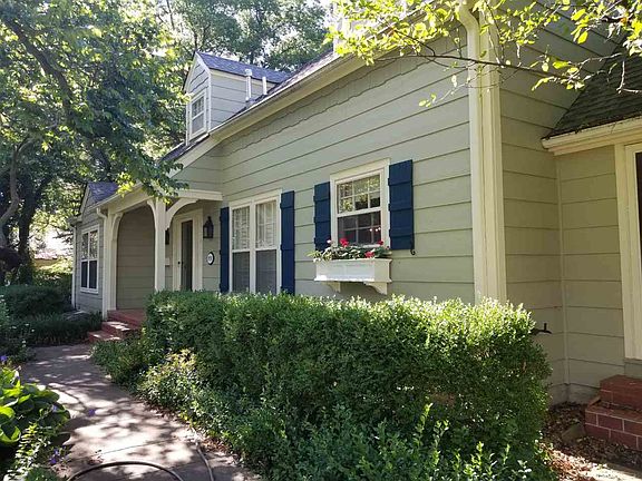 You have admired it for years, now here is your chance to make it your own! This gracious home sits on 4 lots just east of Westwood Elementary. Custom built in 1944 and meticulously cared for by each owner since. In recent years, the kitchen was enlarged, completely gutted, taken back to the studs and professionally installed for classic style and perfect function. Sleek 6-burner commercial style gas range, venting to the outside, wine fridge, stainless appliances, prep sink in the island, custom cabinetry, granite counters, farm sink, custom lighting, Kirtz shutters and more. Gorgeous hardwood floors throughout the beautiful dining and living room, and most of the first floor. Sun room is heated, cooled, and insulated for comfortable, relaxed living. Finished basement (27 X 15) is dry and has been used as an office. Two energy efficient heating & air units were replaced 10 years ago, new duct work upstairs at that time too. Upstairs windows have been replaced with energy efficient windows. Upstairs has 2 large bedrooms, full bath, bonus room and walk in attic. The owner's bedroom/bath/huge closet is downstairs. There is an entrance off the kitchen for catering events or deliveries. Near that entrance, the over-sized utility room has natural light, extra storage and an office or sewing space. Two 2 car detached garages. One of the garages is near the southwest corner of the lot and its entrance and driveway is on 5th St. Large yard is completely fenced. Picturesque back porch plus deck, garden spot. Very private. Exterior boasts of engineered smart board siding and a professional paint job. New shutters (even on the back of the house!). Mature and flowering landscaping, hedges and trees. Easy walk to campus, to school, and to parks. If you are looking for roomy, beautiful, unique and special, this mid-century charmer has it all!
