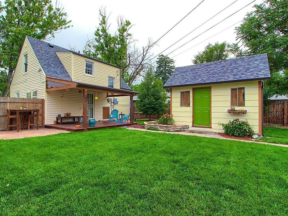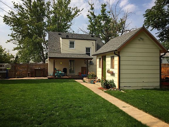 Charming 2 story home with 3 beds, 1 bath in Chaffee Park! Open living room and dining room with laminate hardwood flooring. Kitchen with attached pantry and laundry room combo with washer and dryer included. Main floor bedroom could be used for an office. 2nd and 3rd bedrooms are located upstairs with original hardwood floors and updated full bath. Amazing backyard with covered deck, patio, fence, fire pit, raised garden beds and sprinkler system. Backyard also features a large building that can be used for a shed or workshop complete with electricity and window.