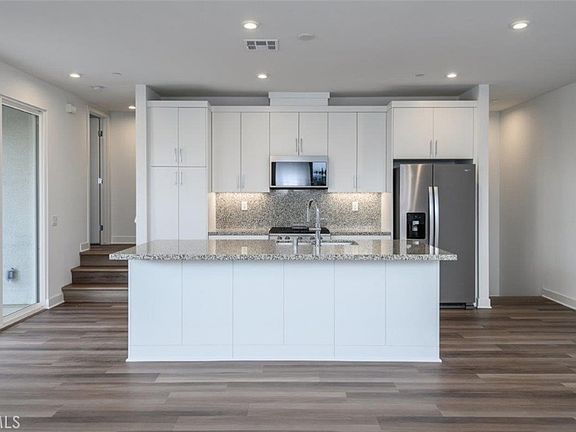The three-story townhouse features a 2-car attached garage, and patios/balconies that extend the living space on the second floor. All three bedrooms are located on the third floor.